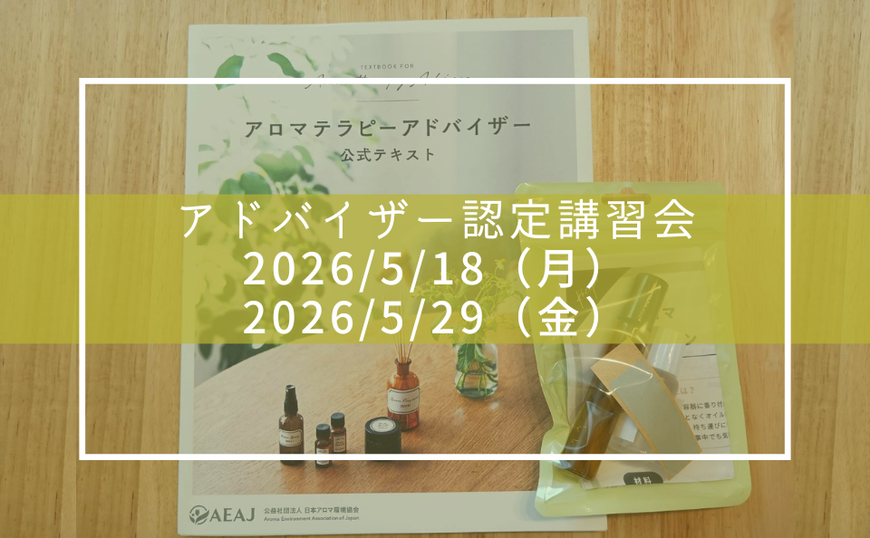 | 2026/04/15 | AEAJアロマテラピーアドバイザー認定講習会 開催日程 |